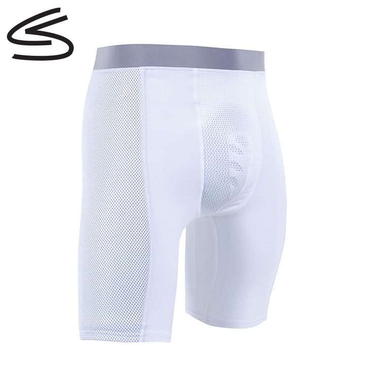 Russell Padded Compression Shorts with thin padding on the outside of thighs.